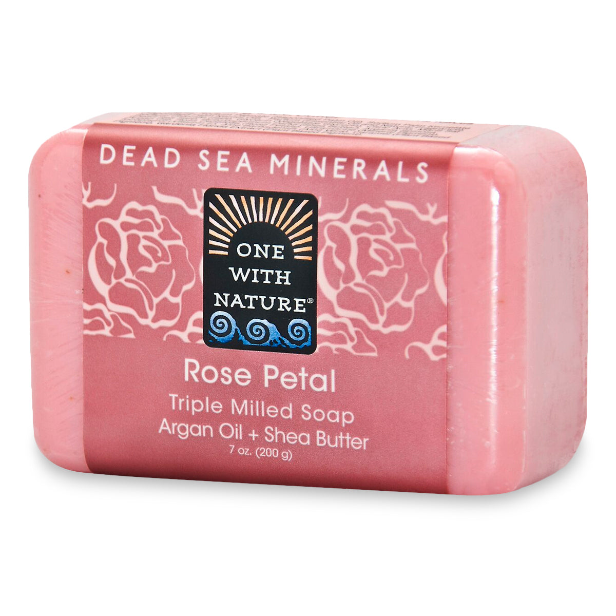 One With Nature's Rose Petal Soap is a triple milled exfoliating bar made with dead sea salts and shea butter. Its pure vegetable base and moisturizers help cleanse and soften your skin. Excellent for dry skin. No animal testing. 100% natural. Made in Jordan